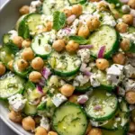 Ein erfrischender Gurkensalat mit Kichererbsen und Feta, perfekt für warme Sommertage.